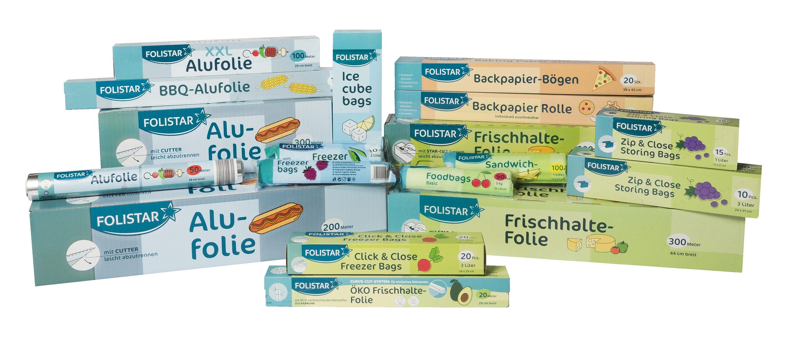 Ob Alufolie, Frischhaltefolie, Backpapier, Zip-&-Close-Beutel oder Müllsäcke – mit FOLISTAR ist alles sicher verpackt & hygienisch geschützt.