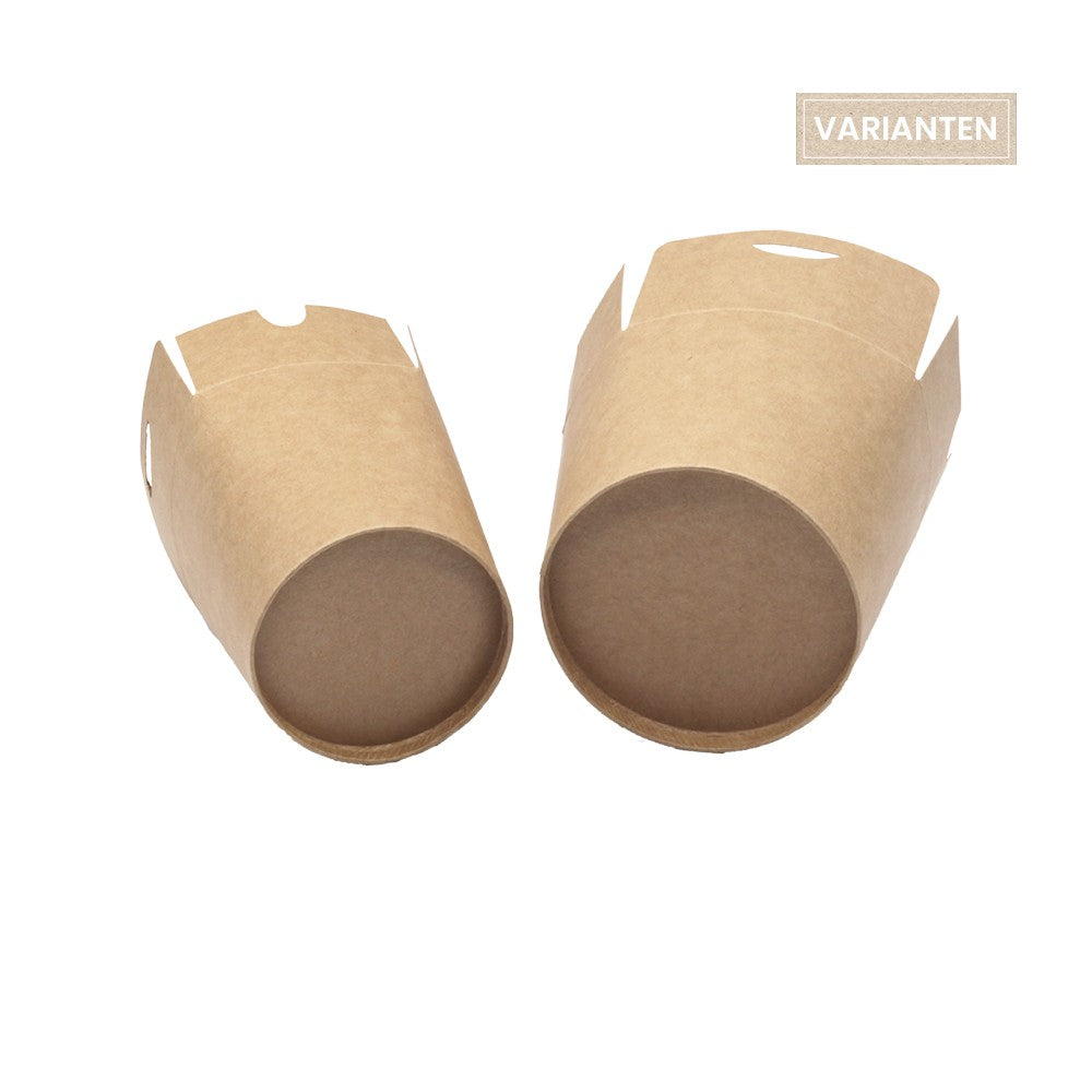 Diese stylische, runde Foodbox bzw. Faltbox ist aus beschichtetem Kraftkarton hergestellt. Sie bietet einen optimalen Schutz für Suppen, Eintöpfe, Nudel- und Reisgerichte. Mit dem praktischen Steckverschluß lassen sich die Boxen einfach verschließen. Die Foodbox ist im Streetfood- und Take Away - Bereich sehr beliebt. Sie kann individuell nach Kundenwunsch bedruckt werden. Das Kartonmaterial ist zu 100 % recycelbar.