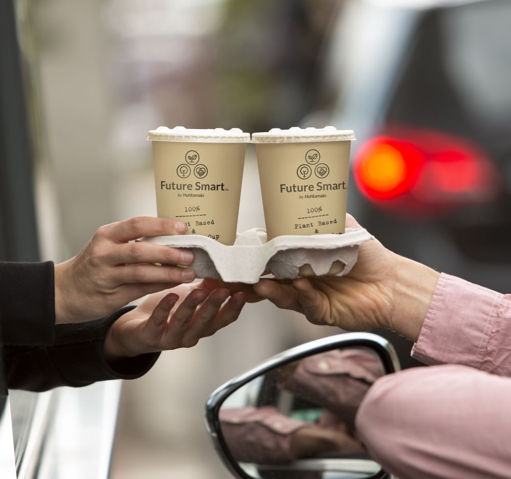 Dieser Automatenbecher besteht aus 100% nachwachsenden Rohstoffen - so genießt man seinen Kaffee gleich noch mehr.